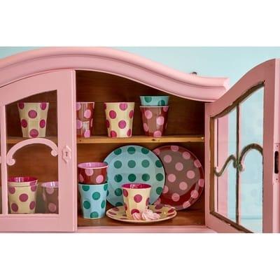 Assiette à dessert en mélamine de couleur crème avec imprimé à pois fuchsia