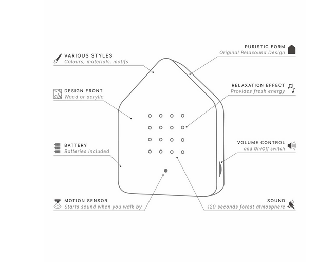 Unsere Relaxound Zwitscherbox schenkt Dir wertvolle Momente der Entspannung. Beruhigende Natursounds lassen Dich durch einen morgendlichen Wald wandeln: Das fröhliche Zwitschern von Amseln und anderen Singvögeln beruhigt sofort. Du spürst, wie sich Kopf und Körper intuitiv entspannen und frei werden.